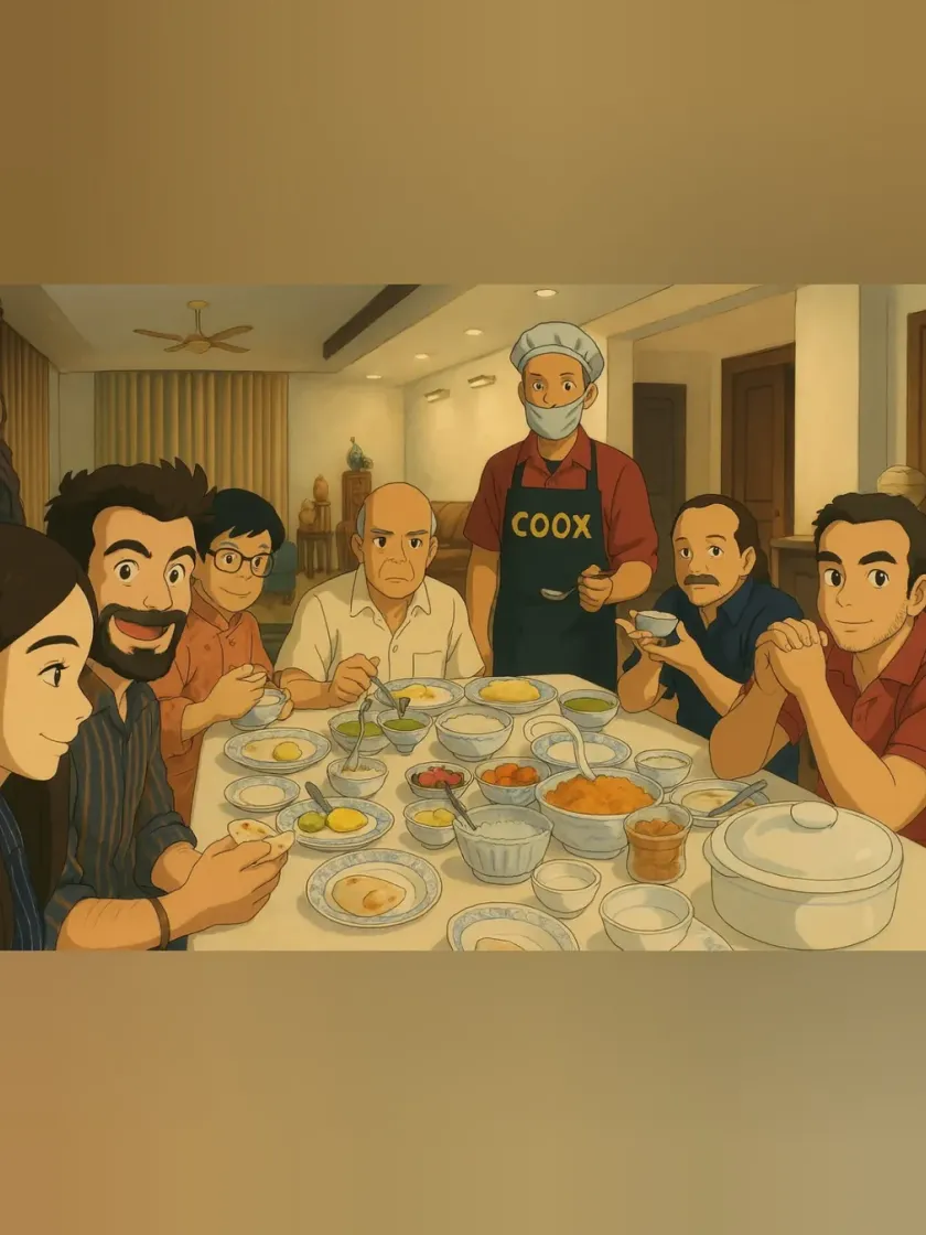 We were so inspired by the joy of home parties that we reimagined them in the beautiful, nostalgic style of anime art. This is our vision of families and friends coming together to share a meal, with our team working magically in the background.
