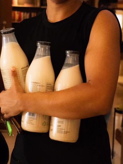 We serve coffee from local roasters and always include plant-based milks at no extra cost. Beyond our signature Coconut Cinnamon Latte, we offer a variety of matcha drinks, house-made fermented specials like Tepache, and refreshing smoothies.