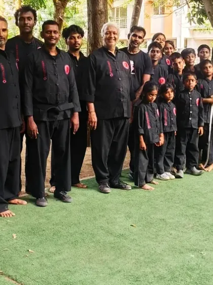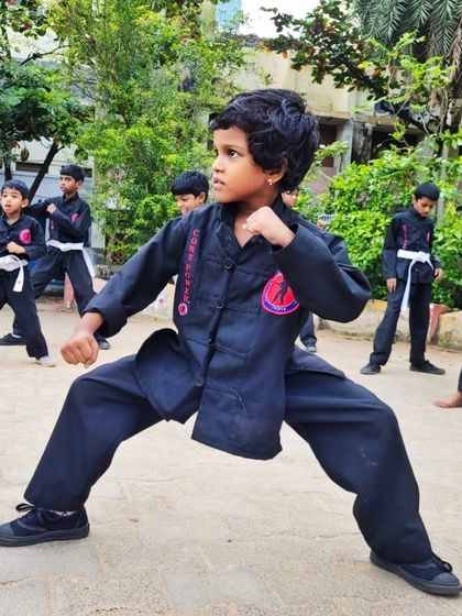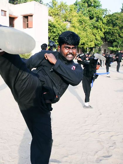 We are Core Power Kung Fu Academy. Been around for 20 years, started out on Mamallapuram beach. Discipline runs in our blood – my brother’s a cop, I’m here coaching. This place is family, not just an academy. Watching students get their belts or win tournaments, pure joy. We do ‘Kootaanchoru’ (community meal), plant trees, keep it real. Martial arts for us? It’s about character, not just fighting. Shaping futures, facing fears, walking straight. That’s our vibe.
