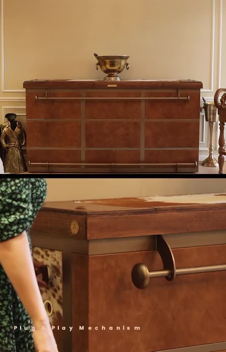 A closer look at the details that define our work. We use Swiss-patented, plug-and-play mechanisms for seamless operation, alongside hand-selected materials like solid ash wood, genuine leather, and custom brass hardware.