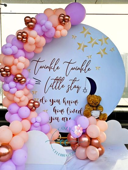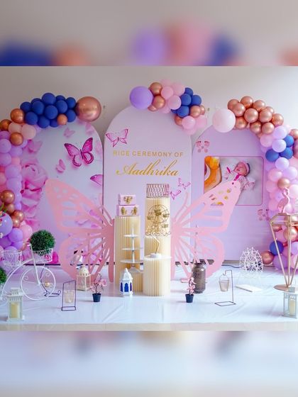 When it comes to welcoming little ones, I get a lot of requests for "We can bearly wait" teddy themes, dreamy "Twinkle Twinkle Little Star" parties, and personalized baby shower backdrops. If you want a gender reveal balloon garland or something totally unique, I make it happen. Traditional events like rice ceremonies (Annaprashan) are close to my heart too - I’ve done butterfly themed rice ceremony decor and love working in your family’s traditions.