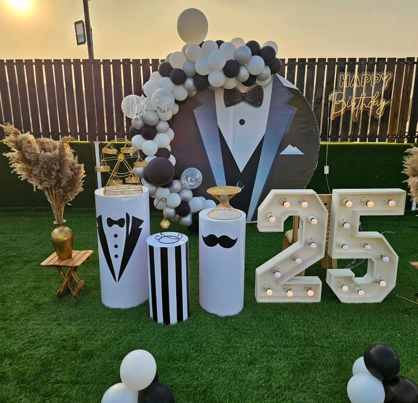 I design personalized birthday parties for all ages, from stylish milestone celebrations to fun themed events. I can provide custom backdrops, marquee age numbers, balloon decor, and unique seating arrangements to match your vision.
