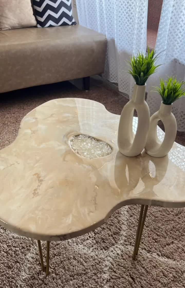 I design and create one-of-a-kind coffee tables and office desks that become the centerpiece of any room. Choose from sparkling geode designs with organic shapes or calming ocean themes to match your workspace or living area.