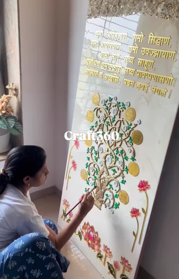 I create resin art that brings positive energy into your home, following Vastu principles. This includes custom Navkar Mantra frames in any size, wish-fulfilling Kalpavruksha trees, and powerful Maha Mrityunjaya mantra pieces, often made with mixed media and real crystals.