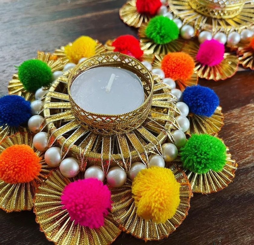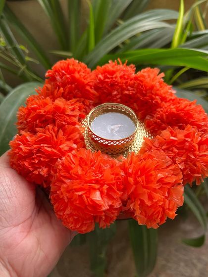 My team and I handcraft every piece in our Bangalore studio to make your celebrations feel special. We offer a variety of decor including vibrant tea light holders, custom garlands, and hand-painted plates, perfect for Indian festivals like Diwali and Dussehra.
