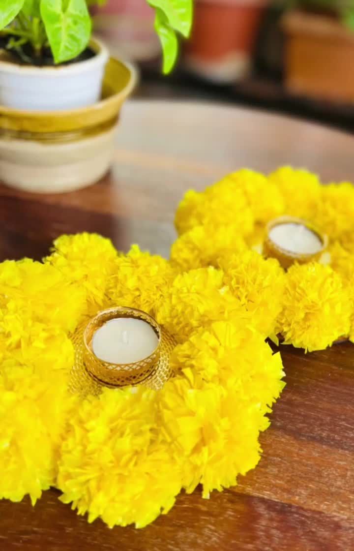 Brighten up your home for Diwali, Durga Puja, or any celebration with our handmade decor. This collection includes colorful pompom and marigold tea light holders, and hand-painted wall plates with traditional motifs and mirror work.