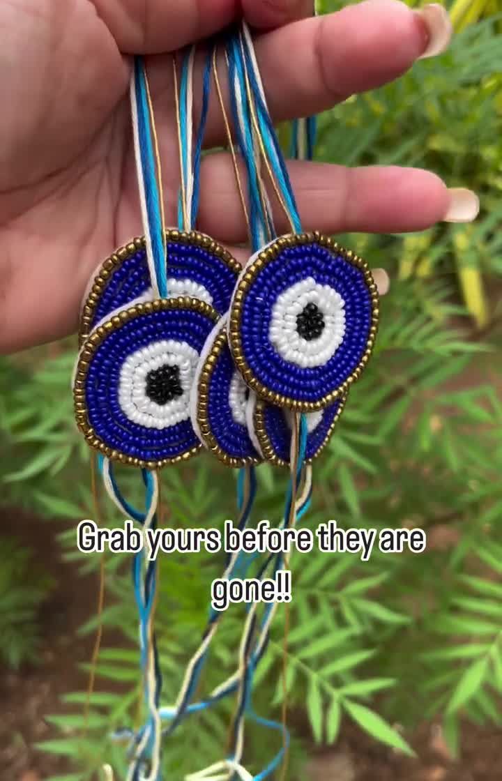 Our Evil Eye accessories are a customer favorite for adding style and good vibes. Available in classic round and heart shapes, these beaded pieces often feature bright tassels and are perfect as earrings or as rakhis to protect your loved ones.