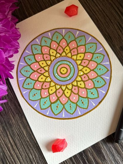Hey, I’m Varsha from Mumbai. Mandala art is like my quiet chat with myself, a bit of 'therapy' when the world gets noisy. Sometimes I go wild with pastel colours, sometimes I keep it 'सादगी' (simple). Faith sneaks in too, especially in my Mahashivratri pieces. Teaching kids and grown-ups, watching them light up, that’s the best. And making custom mandala photo frames for families? Feels like I’m freezing a happy memory. All crafted with love, always.