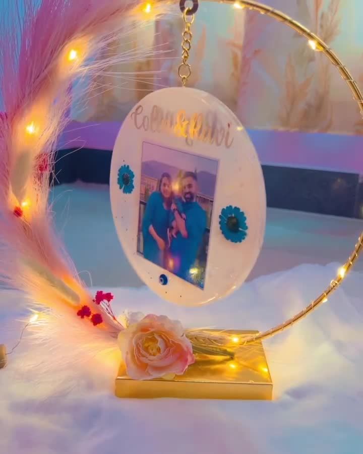 Your wedding varmala holds so many blessings, and I can preserve it for eternity. I carefully dry the flowers and encase them in resin with your photo and wedding date, turning them into a timeless piece of art.