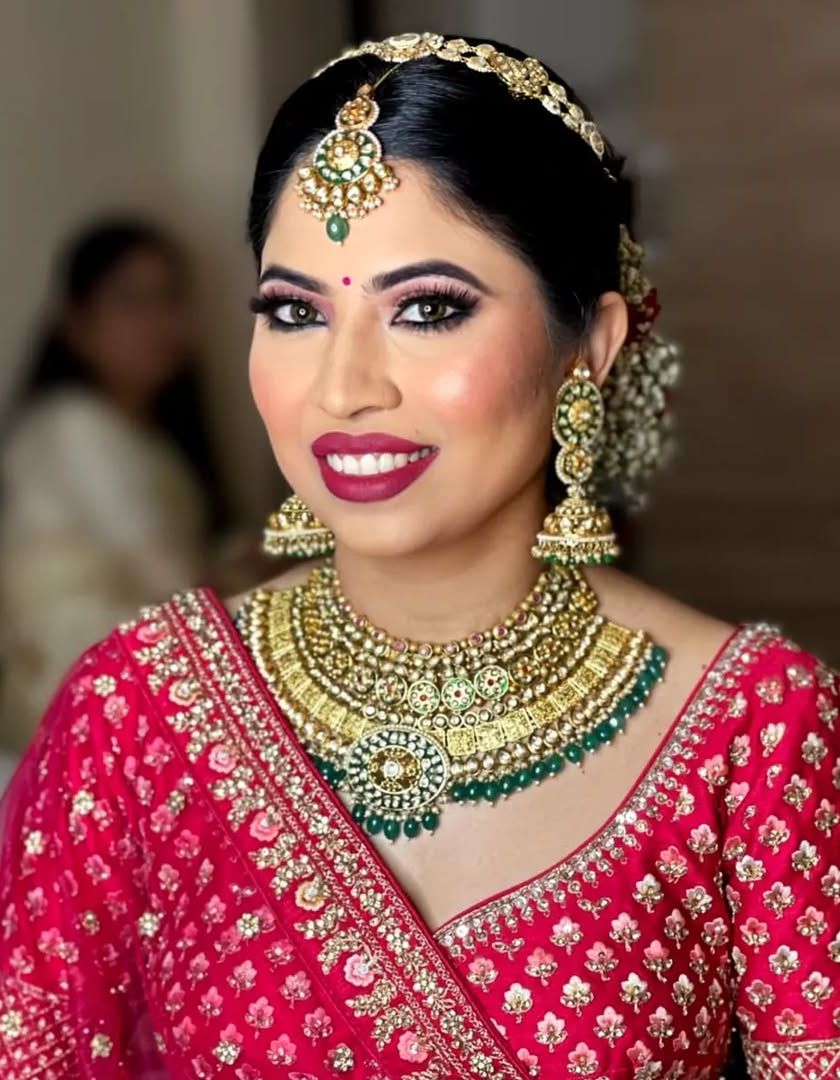 This is my specialty. Find everything you need for your big day, from magnificent layered necklaces to matching maang tikkas and earrings. Each rental set is curated to give you a royal, unforgettable look, and can be customized with different colored beads to perfectly match your lehenga.