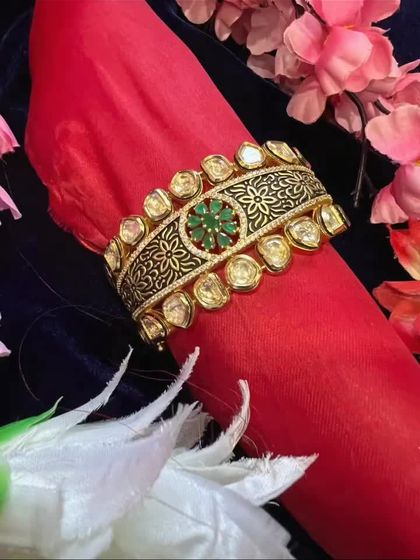 The right accessories complete your look. Here you will find a beautiful selection of hathphool (hand harnesses), elegant earchains, sparkling bangles, and kadas. I also have delicate Kundan necklaces for smaller functions or for guests who want a touch of subtle elegance.