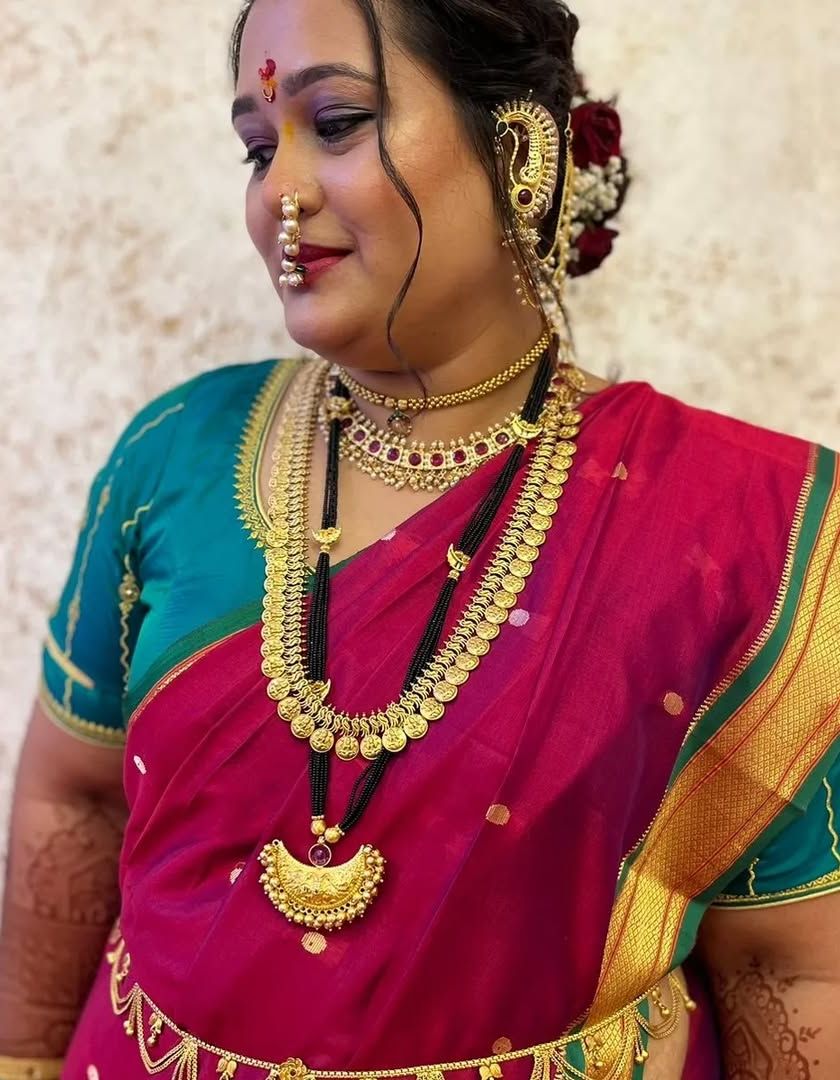 For our beautiful Marathi brides, I have a special collection of traditional jewellery. This includes classic pieces like Kolhapuri saaj and coin necklaces, designed to complete your authentic Maharashtrian bridal look.