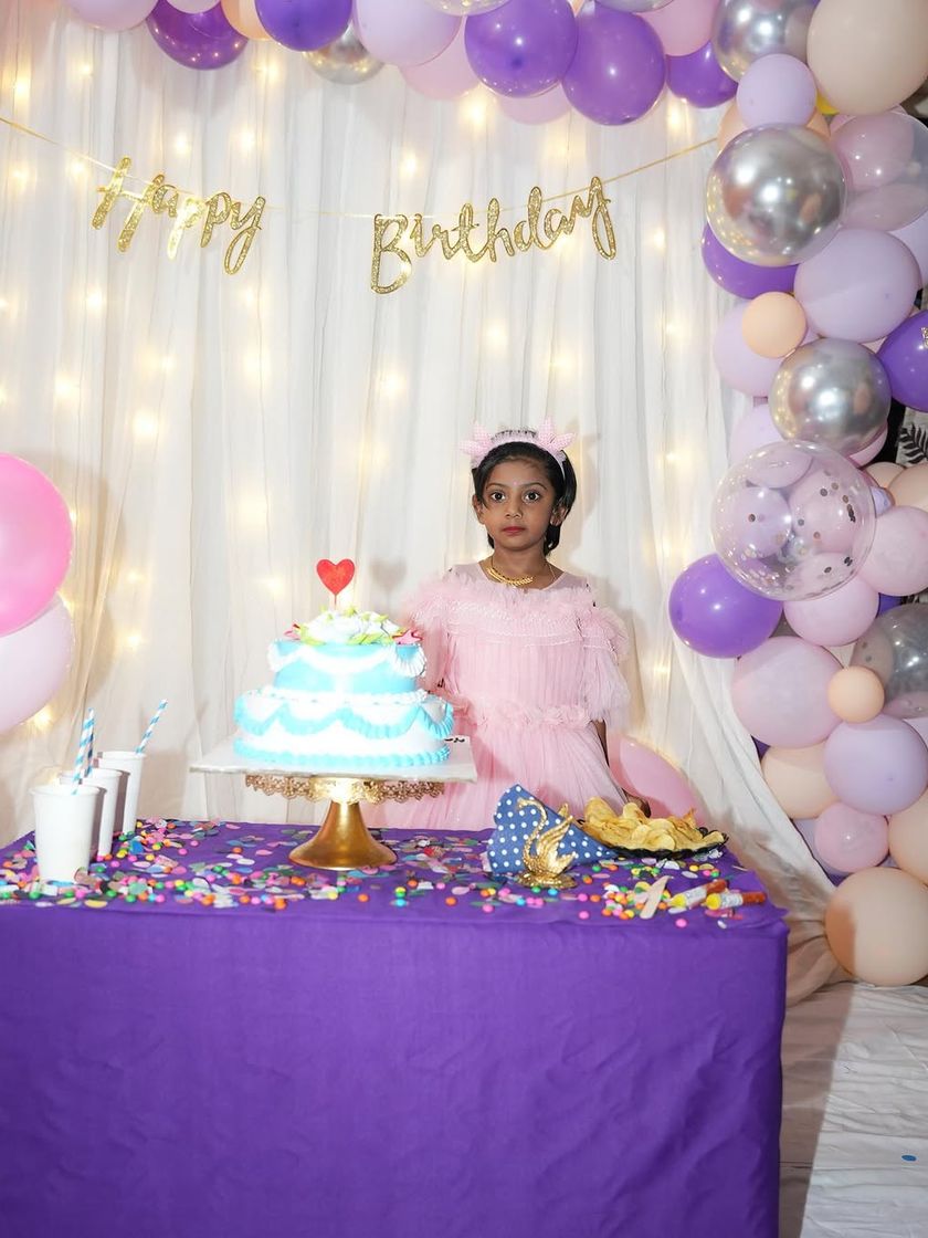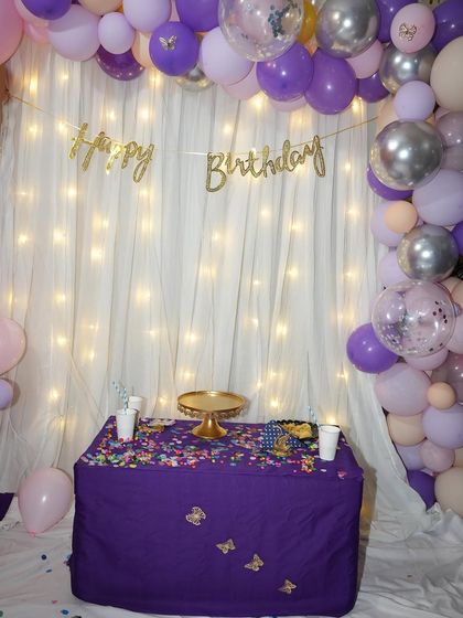 If you're looking for something beautiful yet understated, I create simple and sweet backdrops right in your home. These setups use soft fabric drapes, fairy lights, and pastel balloon garlands to create a warm and inviting photo corner.