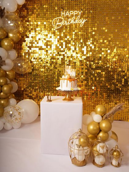 For a touch of sparkle and sophistication, I offer glam backdrops perfect for birthdays, pre-wedding shoots, or any special occasion. This style often includes popular choices like gold shimmer walls, custom neon signs, and elegant balloon arrangements.
