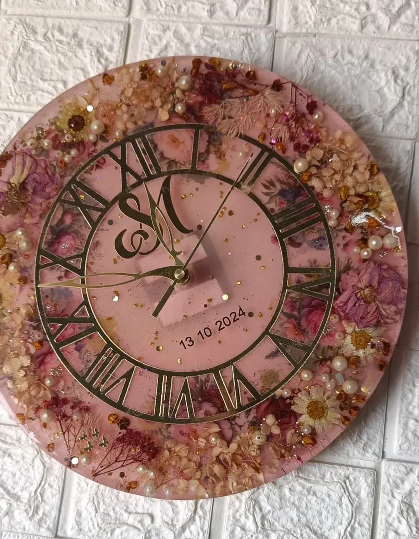 Turn your special memories into a functional piece of art for your home. I can preserve your wedding varmala, anniversary flowers, or other meaningful florals into a beautiful, custom-made resin wall clock. You can choose the size, color theme, and add names or dates to make it truly yours.