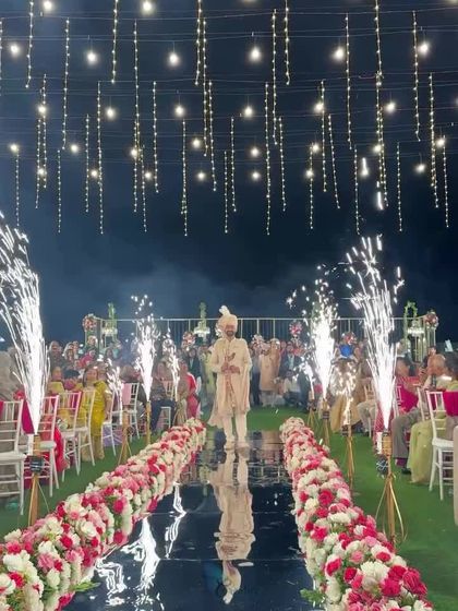 Your wedding day is where the magic unfolds. We’re all about grand entrances for the bride and groom, and our varmala ceremony setups are famous - think mirrored aisles, floral mandaps, cold fire pyros, confetti blasts.