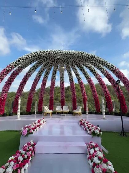 - Entrance: Light based tunnel or floral arch with red carpet.
