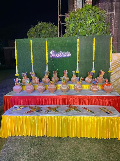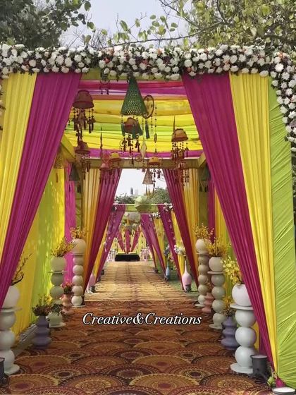 I love bringing energy to pre-wedding functions. My Haldi and Mehendi setups are full of life, using traditional elements like marigolds, colorful drapes, and fun props like decorated jhoolas and photo booths. I offer everything from classic yellow themes to boho-chic and quirky designs.