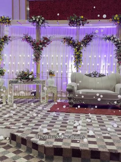 The stage is the heart of your celebration. I create stunning backdrops for your main events, from opulent reception stages with grand sofas to romantic floral arches and modern, minimalist designs for engagements. Each stage is designed to be a perfect frame for your most important moments.