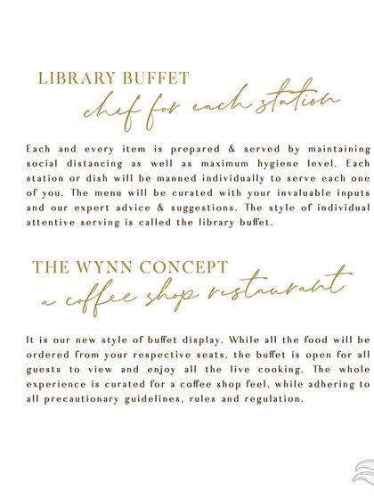 Innovative concepts like Library Buffet - Try our Library Buffet or Wynn Concept for a fresh, safe, restaurant-style buffet at your event.