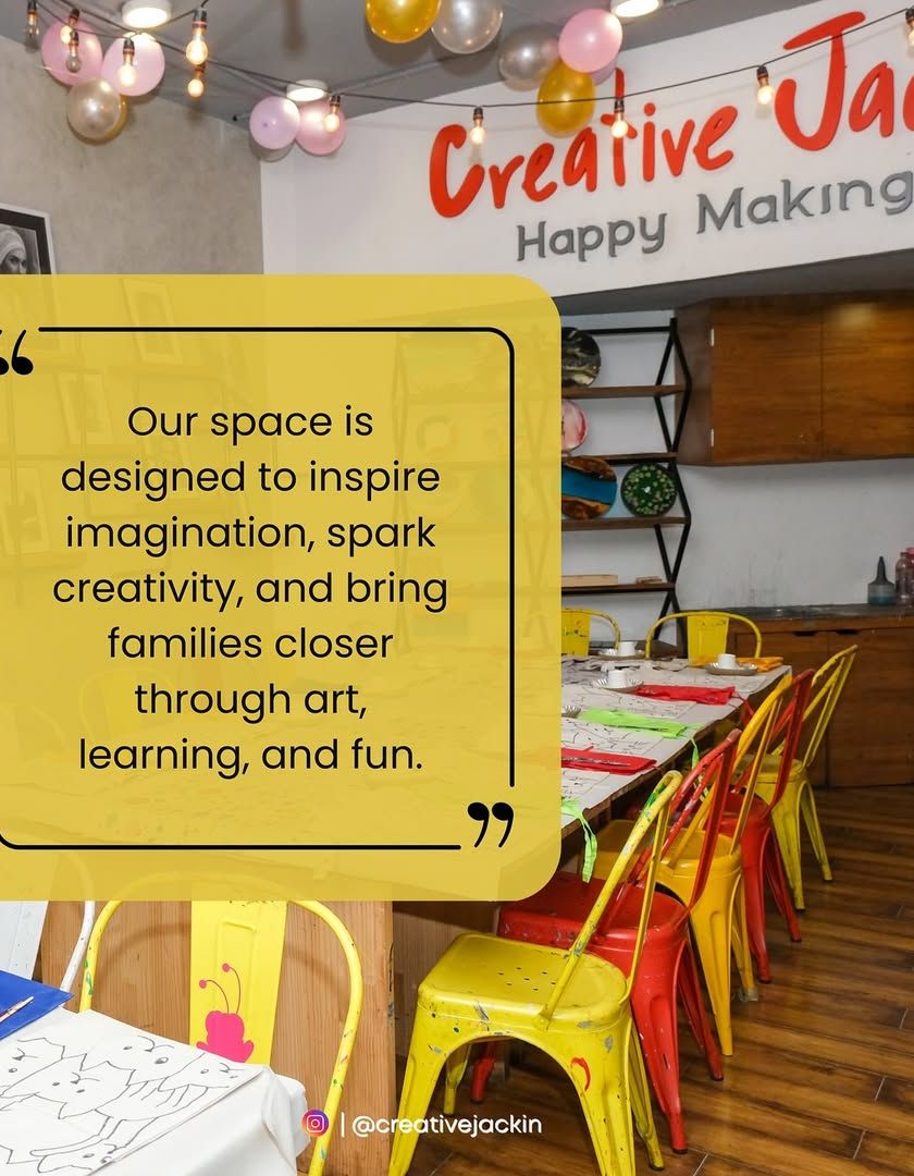 My creative studios in Mumbai and Pune are designed to inspire imagination and bring people together through art. I offer a wide range of services including art classes for all ages, therapeutic workshops, and DIY craft events. You can also bring the creativity home with one of my DIY kits.