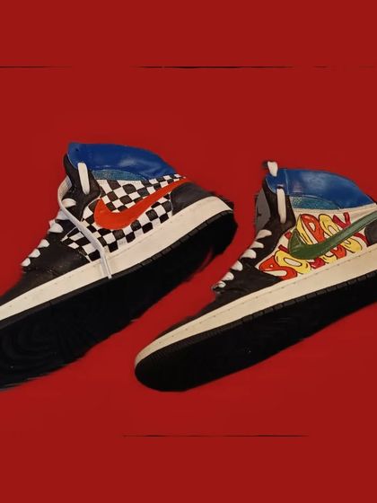 I can give your favorite sneakers a completely new identity. I paint on various materials to create one-of-a-kind footwear, whether you want a retro checkerboard design, bold graffiti lettering, or a completely custom graphic.