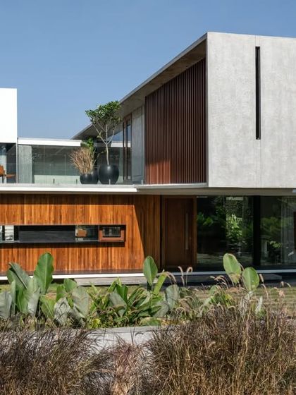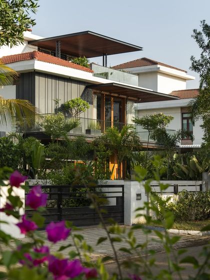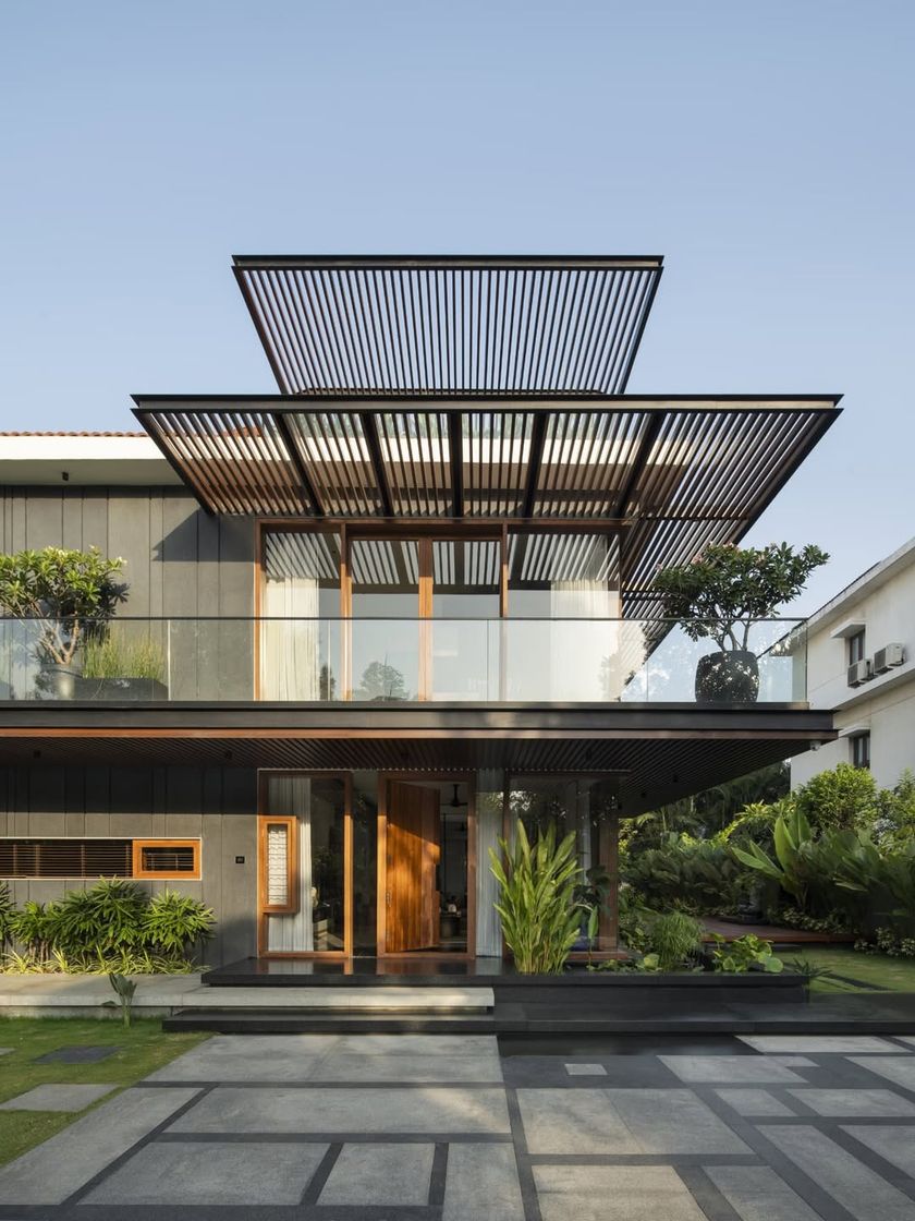 This project involved the complete renovation of a villa in Hyderabad, where we stripped back the original structure to create a new, modern identity. Our design introduced a refined play of linear arrangements, using cantilevered balconies and floating pergolas to compose a serene and structured home where built form and greenery are seamlessly integrated.