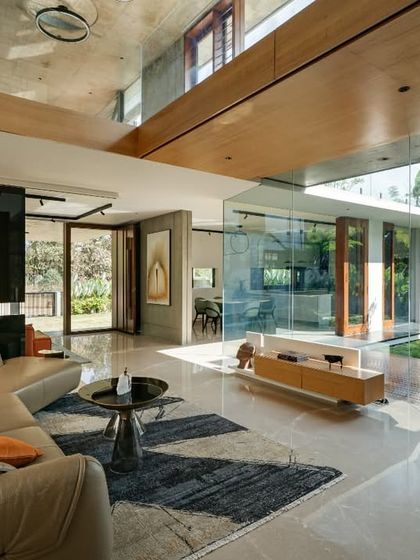 This residence is defined by its linear form and a dramatic 24-foot cantilevered volume. We designed the home around a central courtyard, using exposed concrete, timber, and vast expanses of glass to dissolve the boundaries between the interior and the lush tropical landscape, ensuring every space is bathed in natural light.