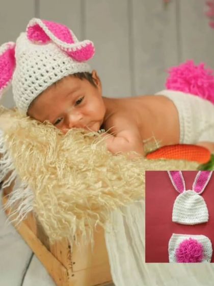 I make handmade and customisable crochet outfits for baby photoshoots, with options to rent or buy and themes you can choose or request.
