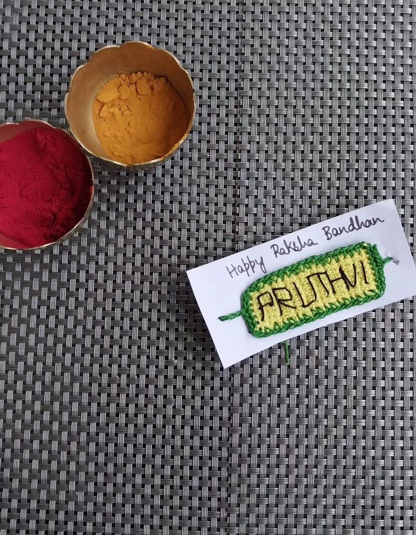 Celebrate Raksha Bandhan with unique, eco-friendly crochet rakhis. I offer a wide range of designs, from personalized name and initial rakhis to fun character themes for kids. All rakhis are handmade by me and can be ordered in bulk for the whole family or for corporate festive gifting.