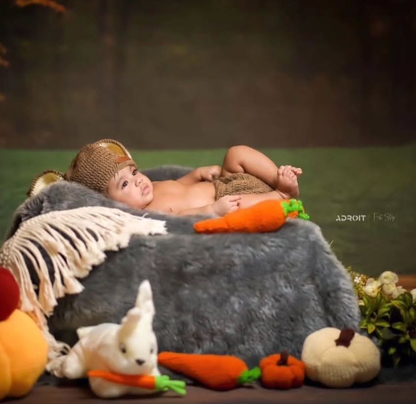 I also crochet a range of soft toys, or amigurumi, like carrots, pumpkins, and bees. These make wonderful, safe props for photoshoots or a special handmade gift for your baby to cherish.