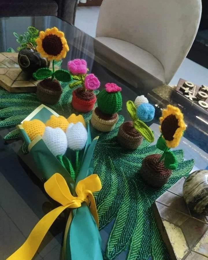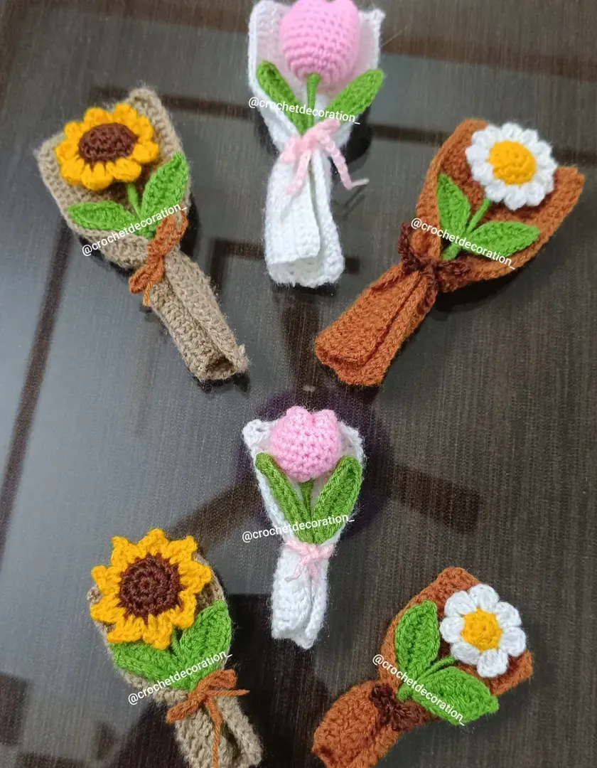 Unleash your creativity by choosing from our wide selection of individual crochet flower stems. Mix and match different types like sunflowers, daisies, and roses, and select your favorite colors to design a truly personal and unique arrangement.