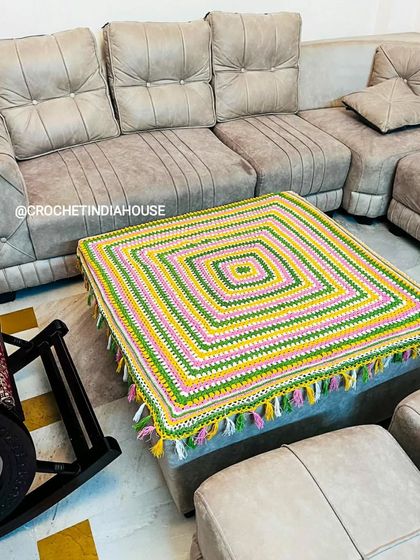 We make custom, washable crochet home decor like table runners, blankets, and wall hangings using pure cotton yarn, and you can choose your own colors and designs.