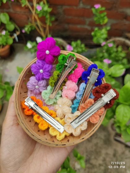 I make custom handmade crochet accessories like earrings, hair clips, and keychains where you choose the colors and designs, and I make each piece myself.