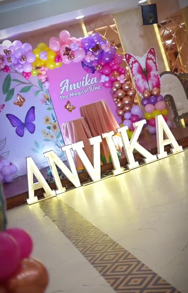 Our creativity shines through our custom decorations. We design and execute a wide variety of themes, from whimsical butterfly and jungle safari parties to elegant floral arrangements, complete with balloon arches, light-up signs, and personalized backdrops.