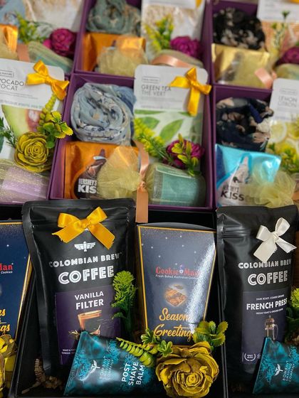 Basket full of goodies - Our hampers have gourmet treats, chocolates, coffee, self-care stuff, and fun surprises—theme based, always.