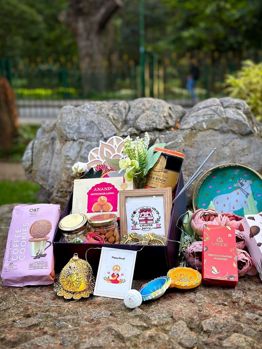 Discover our extensive collection of Diwali hampers, designed for both personal and corporate gifting. We offer a wide variety of customizable options, including elegant gift boxes, rustic lighted crates, and eco-friendly jute bags filled with sweets, dry fruits, savory snacks, and festive decor.
