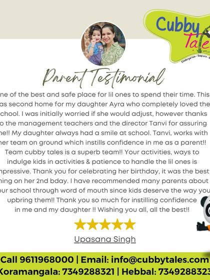 Nine years back, we just wanted a happy adda for chotu kids, now Cubby Tales is like a second home – not just for the little ones but for our whole gang here. Mondays? We look forward to them! We believe, like Magda Gerber said, 'Childhood is not a race.' Kids here lead, explore, make a mess, and learn their own way. When a parent says, 'Cubby is home for me,' bas, that’s the real win. Watching our cubs giggle, grow, and graduate – that’s why we do what we do.