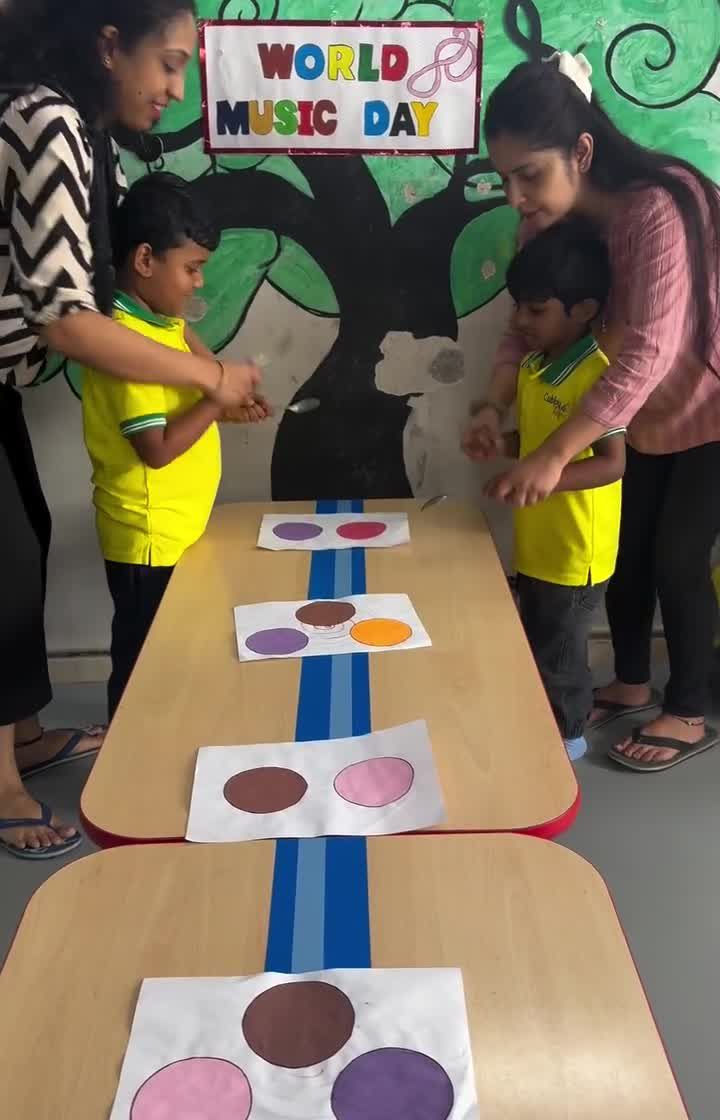 Our curriculum is built around child-led, play-based learning. We use a variety of hands-on activities to spark curiosity and creativity, including creative arts like pendulum painting, sensory exploration with different textures, and early academic concepts introduced through fun games.