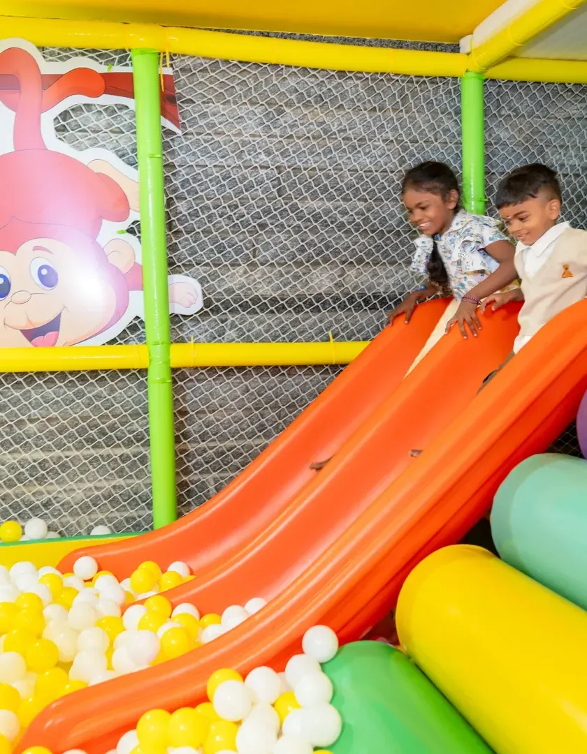 We believe play is the most important work of childhood. Our centers in Koramangala and Hebbal are thoughtfully designed with bright, safe, and stimulating play zones, including indoor slides, ball pits, and outdoor areas that encourage exploration, physical activity, and social interaction.