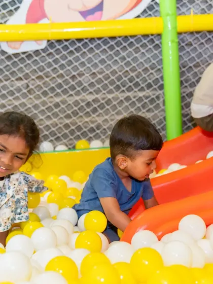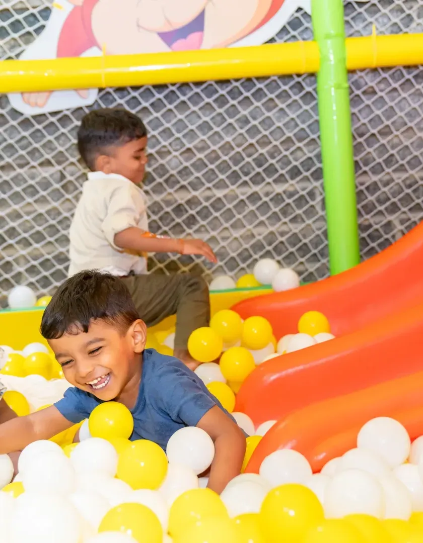 We believe that play is the most important work of a child. Our dedicated playzones are designed for safe exploration and boundless fun, featuring ball pits, slides, and tunnels that encourage physical activity, social interaction, and imaginative play.