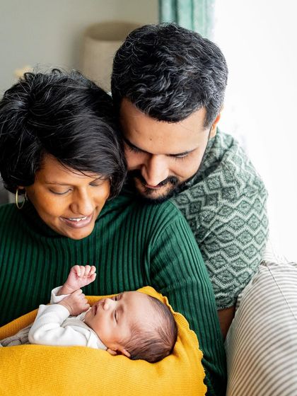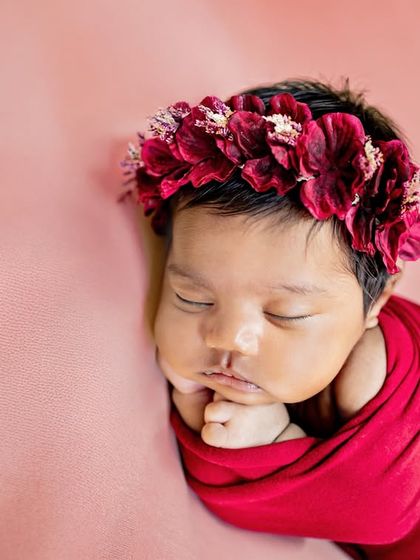 We come to your home anywhere in South India with all props and setup to photograph your newborn or baby, offering both posed and natural styles, and include the whole family in the shoot.