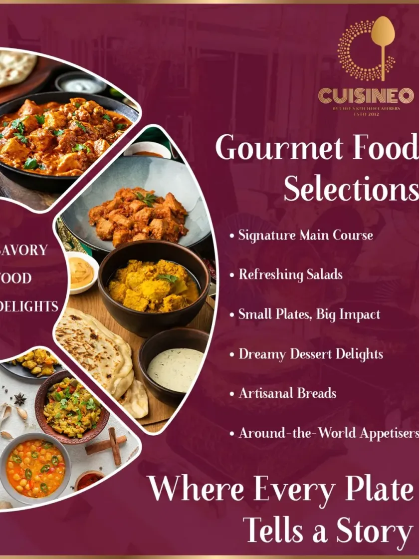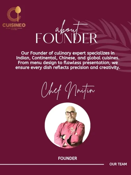 Cuisineo is a passion project born from 30 years of culinary experience. My partner Chitra and I work together to ensure every event is a success, driven by a simple philosophy: food should be delicious, service should be impeccable, and our clients should be happy.