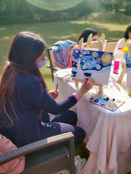 We offer immersive art workshops in various mediums including impasto palette-knife, printmaking, terracotta pot painting, and oil pastel landscapes. Our workshops run over weekends in flexible formats (1-5 days) with small group sizes for personalized attention.