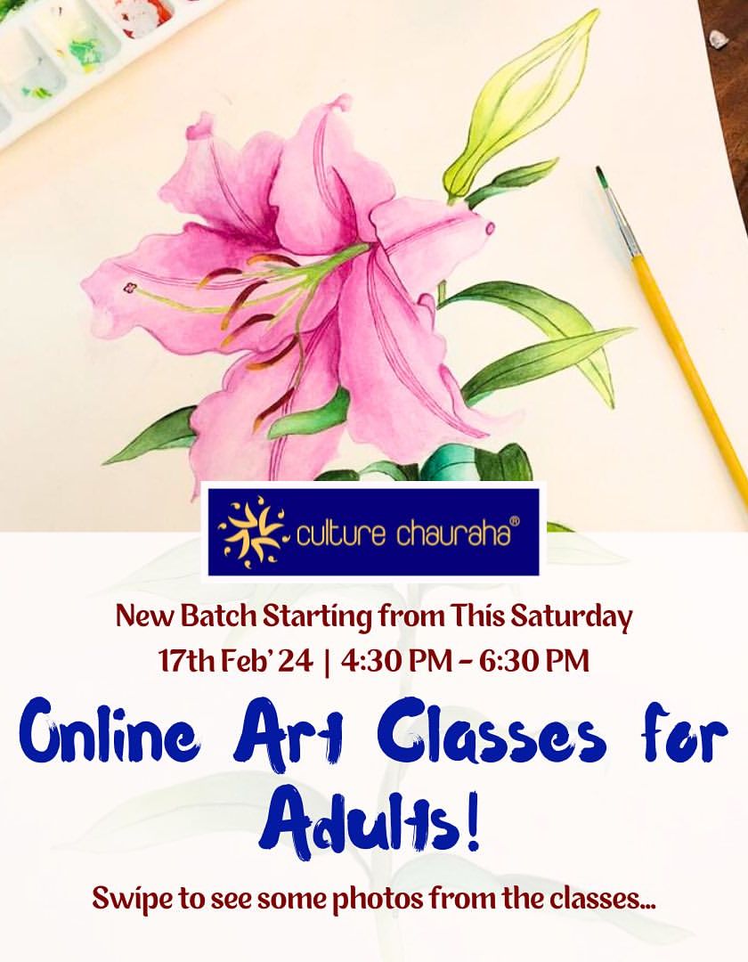 Unwind, de-stress, and rediscover your creativity in our live online classes for adults. We keep our batches small for personal attention, guiding you step-by-step through mediums like watercolors, acrylics, and oil pastels, no matter your skill level.