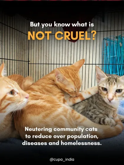 - For cats: Our Trap-Neuter-Return Bangalore method is for cats over 5 months. You trap, bring them to us, we handle surgery, recovery, and return them home.