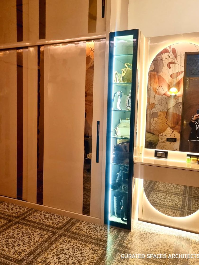 I love designing organized, stylish storage. This includes walk-in closets with dedicated display sections for bags and accessories, and clever dressing units with integrated lighting and hidden storage.