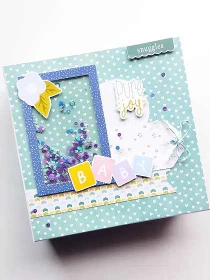 - Shaker Details: Windows with clear acetate filled with moving sequins and glitter.