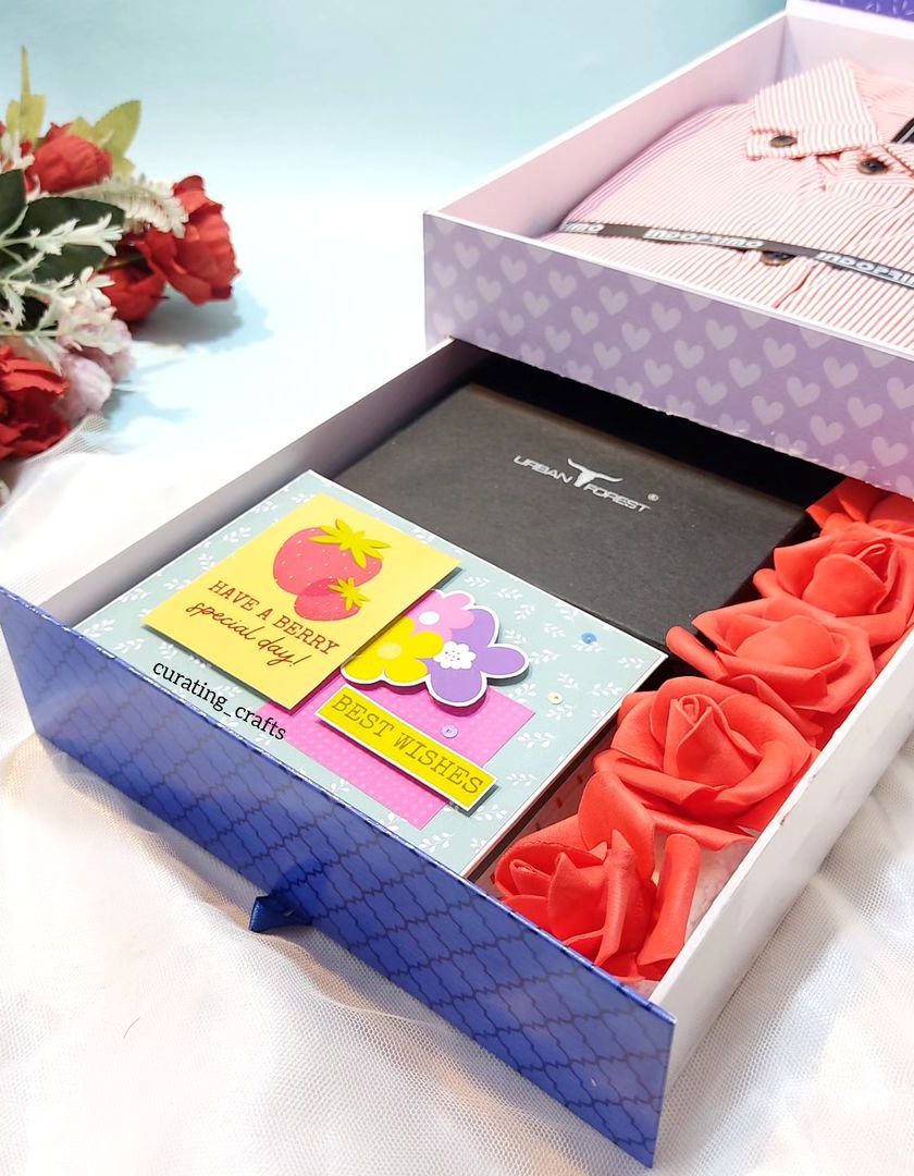 I create fully customized gift hampers for any occasion, theme, or budget. From a 'Shirt Box' for men that includes a scrapbook and wallet, to a 'Mom-to-be' box with adorable keepsakes, or a fun-filled hamper for your best friend, each one is a curated collection of joy.