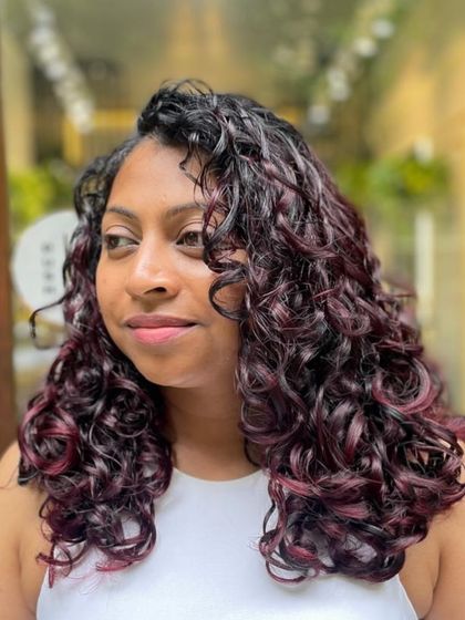 No Bleach Balayage & Colour - Want colour but scared of damage? Try our No Bleach Balayage or Cherry Cola hair color—safe, vibrant, and curl-friendly.